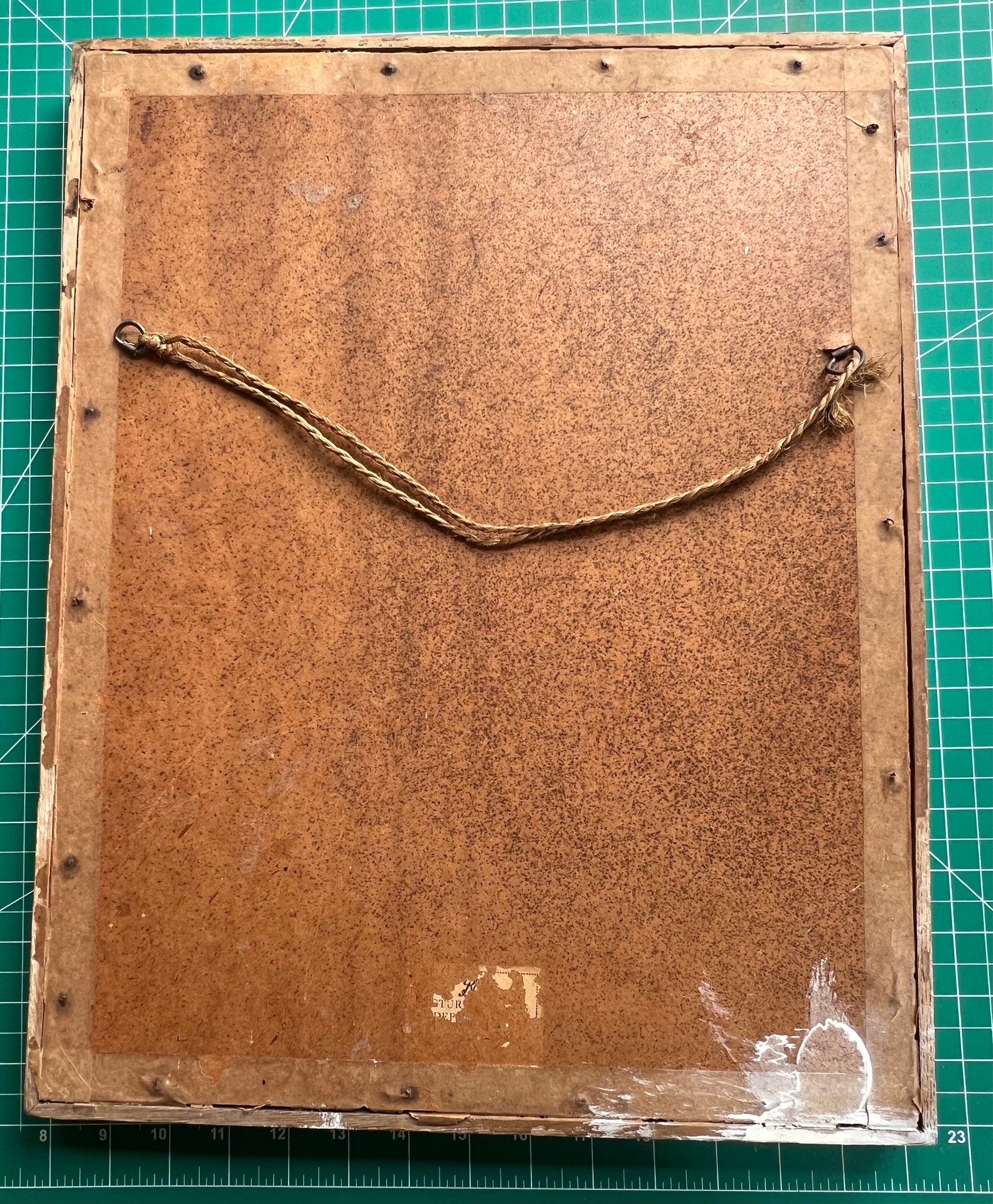 Measures 13” x 17” sight; 14” x 17.5” framed. Has not been reproduced.